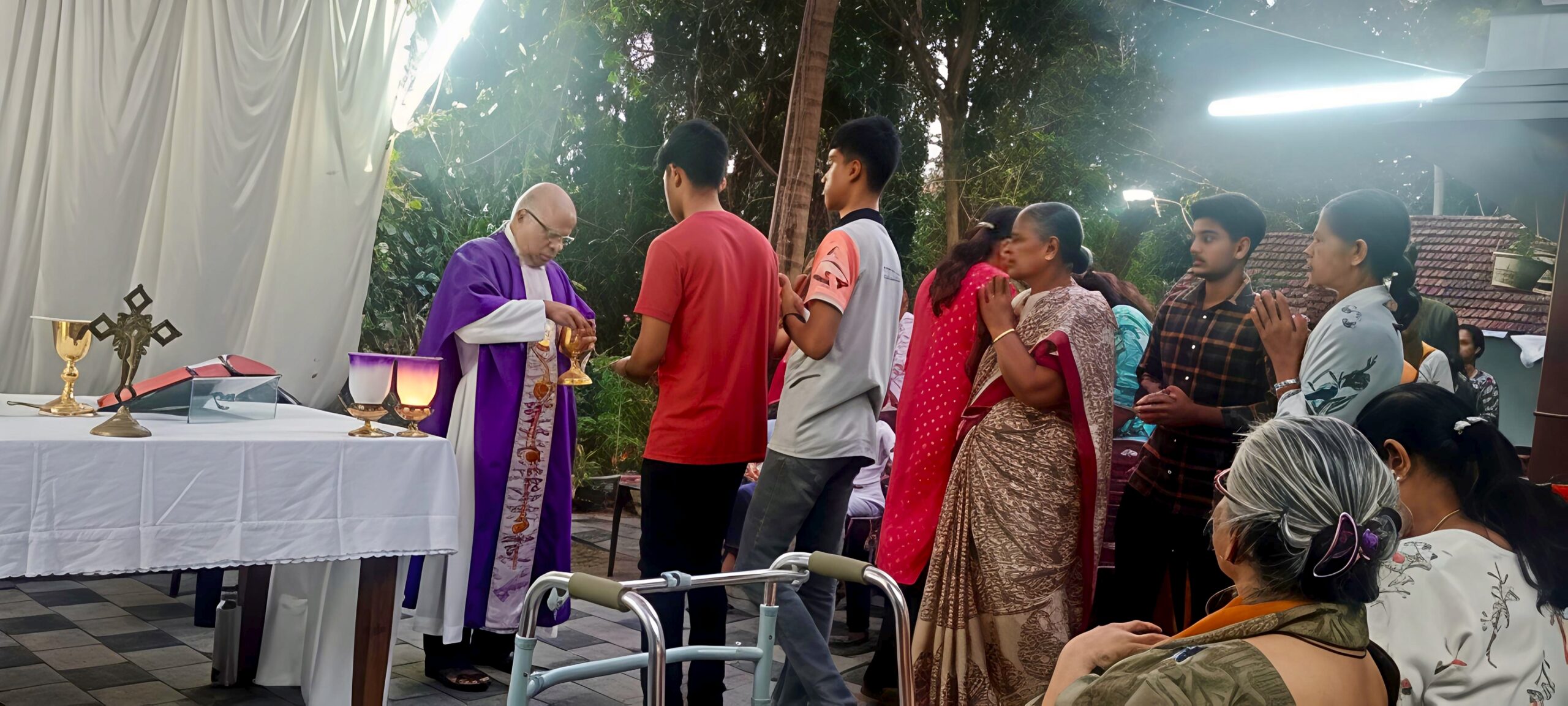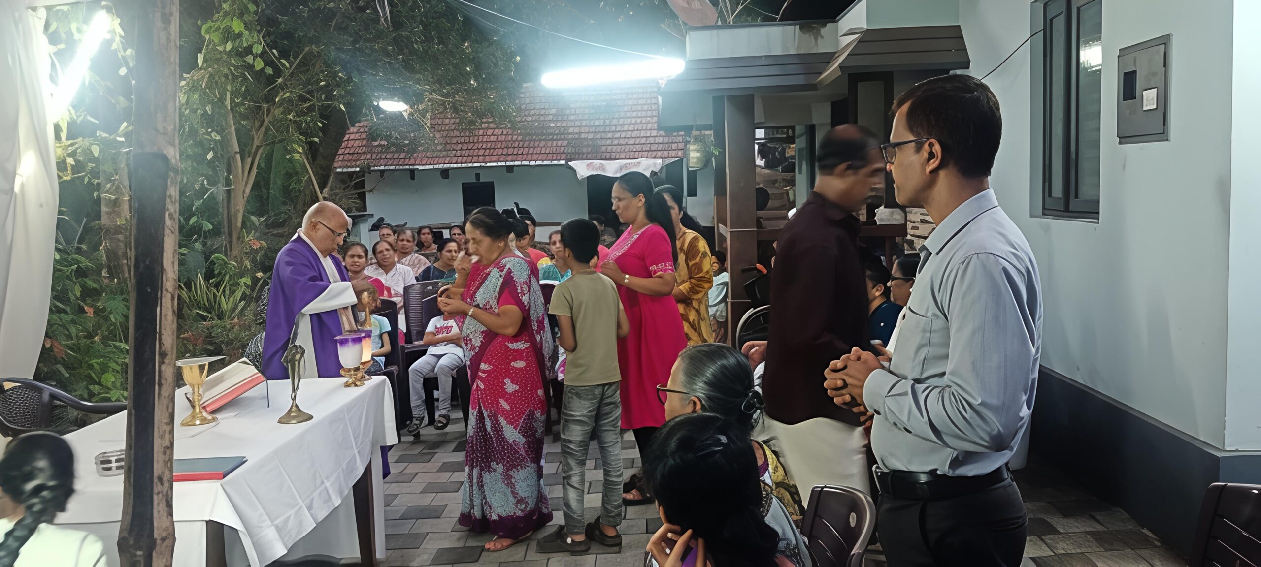 To provide an opportunity to the ailing and elderly ward members to participate in the Holy Eucharist, the celebration was held at Vailankani Ward on 17th March 2026 at 6:00 p.m., at the residence of Mr. Joseph Vas. Members of St. Alphonsus Maria Liguori Ward also joined in the celebration.