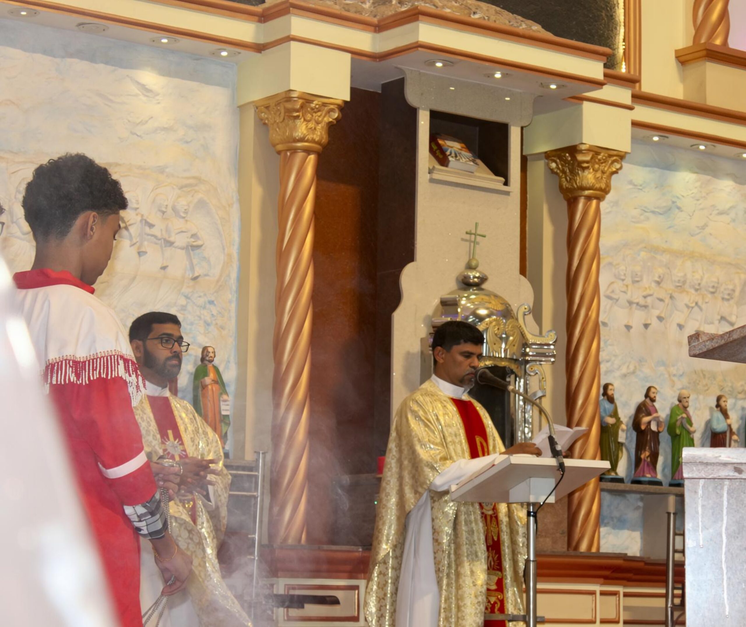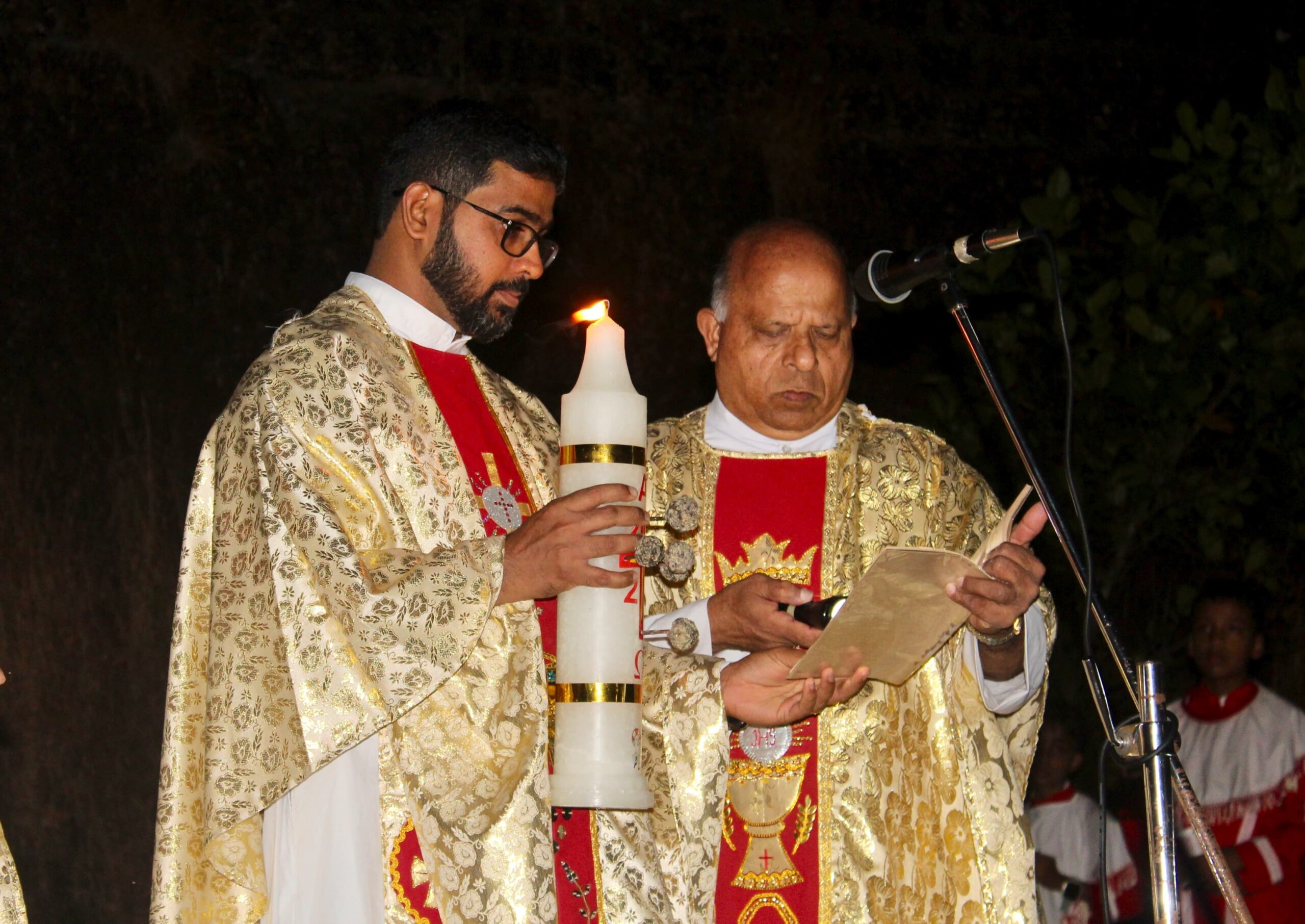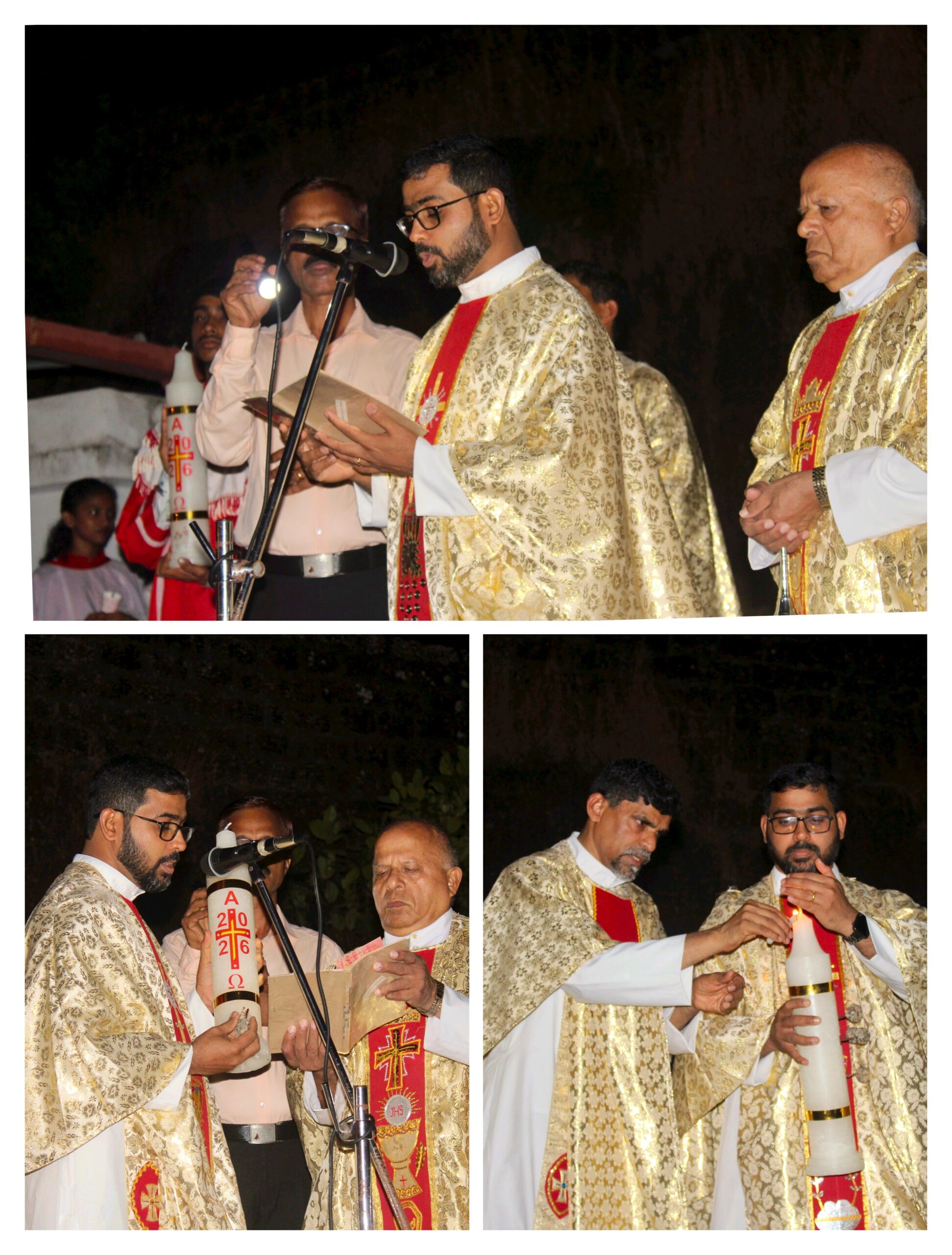 The liturgy began with the meaningful rite of candle pricking followed by the lighting of candles, symbolizing the triumph of light over darkness and the risen Christ as the Light of the World. This opening ceremony created a deeply prayerful and reflective atmosphere among the congregation.