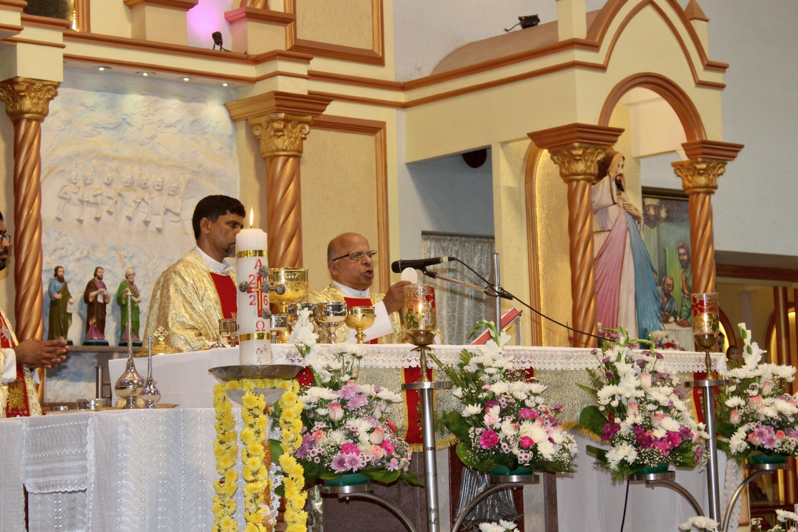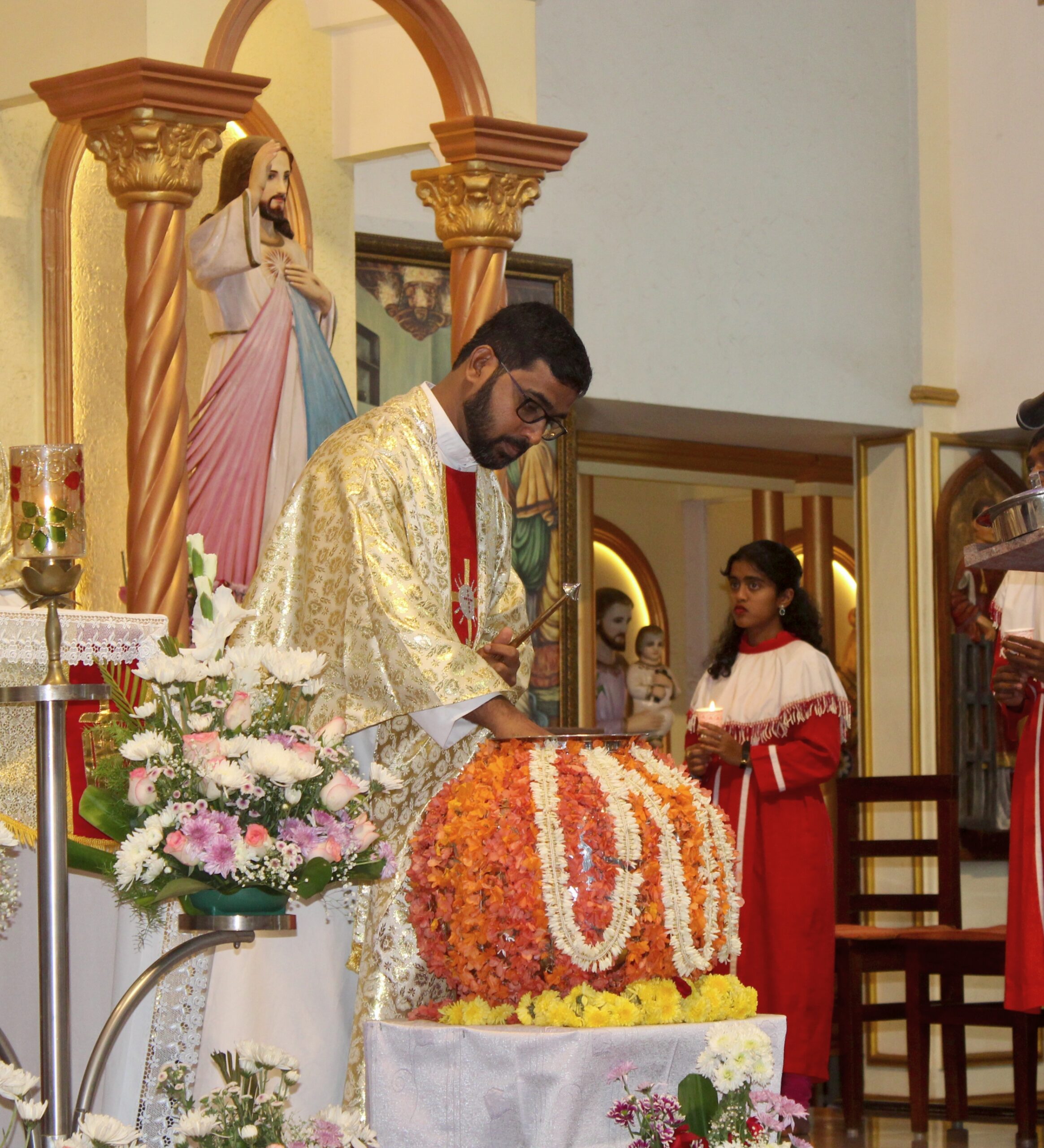 The Holy Eucharist was solemnly celebrated by the main celebrant, Rev. Fr. Pramod Crasta. He was joined by the Vicar, Rev. Fr. Apolinaris Crasta, and Rev. Fr. Vincent Vinod Saldanha, who were present for the occasion.